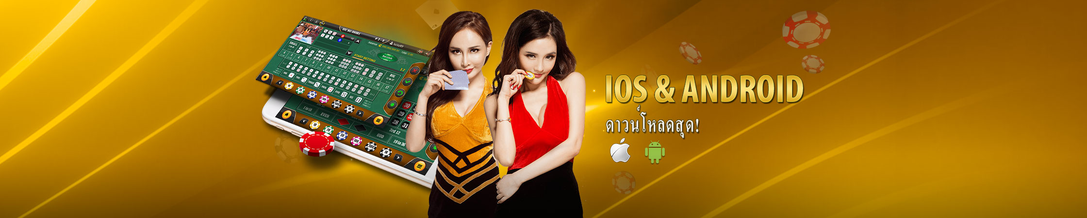 - ดาวน์โหลดแอพพลิเคชั่นตอนนี้ และให้ท่านสนุกเพลิดเพลินกับคาสิโนถ่ายทอดสดบนโทรศัพท์มือถือหรือแท็บเล็ตของคุณ!